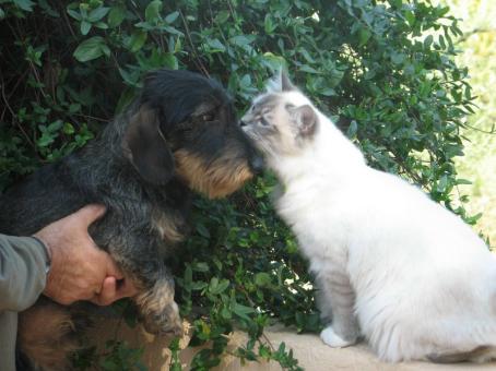 Victor le teckel et Boy-scout le birman bleu tabby à 6